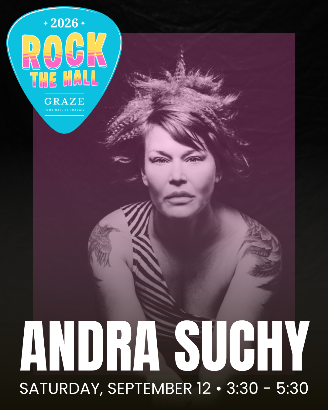 Poppy Red Productions, Graze Food Hall, and the Minnesota Twins present Rock the Hall, returning for its second season. Andra Suchy joins the local outdoor music series on September 12 from 3:30–5:30 PM. FREE & OPEN TO ALL—just steps from Target Field.